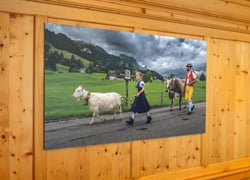 Marcel Schiegg, Wandbild, Spannbild, Wanddekoration, Appenzell, Appenzellerland, Raumakustik, LED Wandbild, Shop, Leinwandbild, Brauchtum, Tradition, Alpfahrt, Öberefahre, Alpstein, Dibond Finerart, Sämtisersee